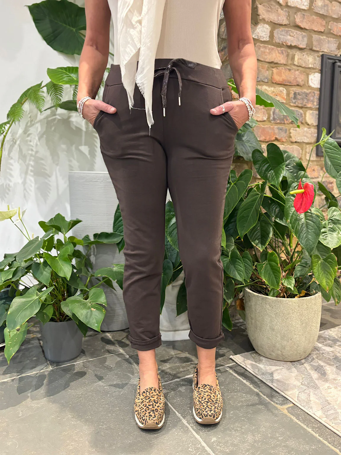 These Magic Trousers are perfect for staycations, holidays or even just going out walking with the dog. Available in a variety of colours, they are super stretchy, comfortable and have a lurex detail drawstring. If you would like a looser boyfriend style fit then we recommend going for the size up.