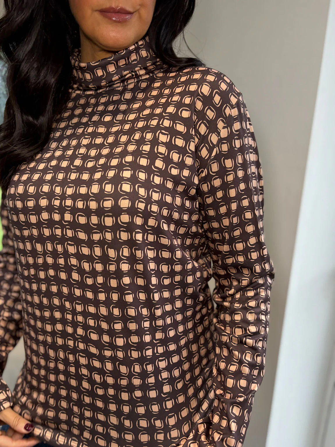 Chocolate Block Print Super Soft Roll Neck