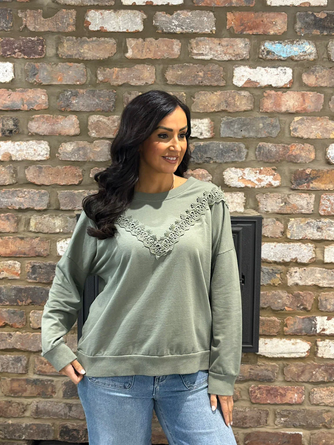 Introducing the Crochet Detail Sweatshirt Fiona – your new go-to for effortless style. This lightweight sweatshirt combines comfort with sophistication, featuring intricate crochet detailing across the front that elevates any casual look. Perfect for layering or wearing solo, it's designed to make you feel confident and put-together, whether you're heading out for the day or settling in at home. The breathable fabric ensures all-day wearability without the bulk, making it an essential addition to your wardrobe.