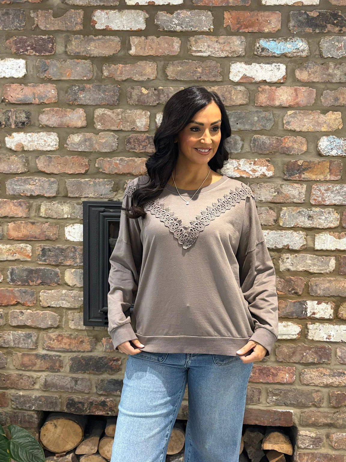 Mocha Crochet Detail Sweatshirt Fiona