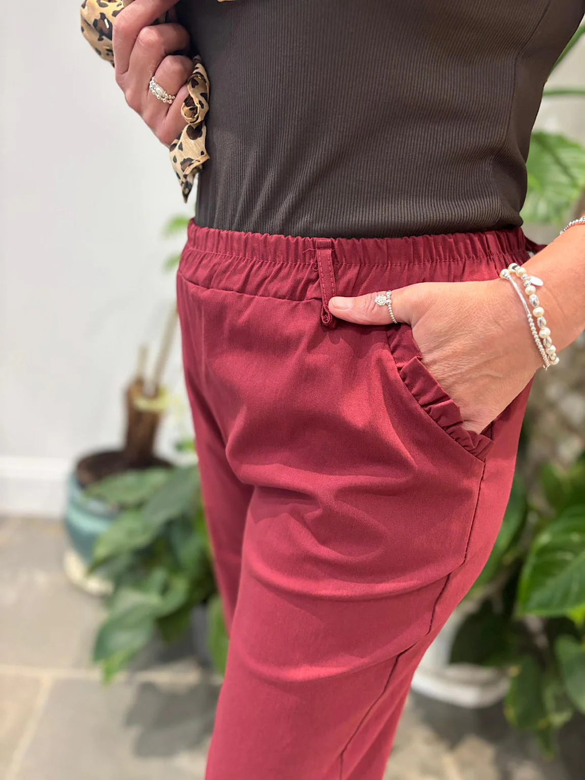 Wine Frill Pocket Trousers Sasha